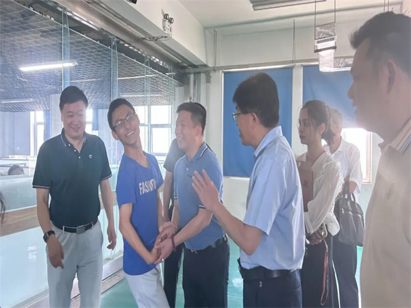 在參觀公司產(chǎn)線和研發(fā)中心過程中,林董一行與企業(yè)中安置的殘障員工還進行了親切交談。林董作為長期關(guān)注和致力公益事業(yè)的臺商企業(yè)家,對科大中天的“愛心能聚眾、堅韌致成功”的企業(yè)精神,給予了高度評價,并表達了為泰安社會經(jīng)濟發(fā)展盡綿薄之力的真摯愿望!